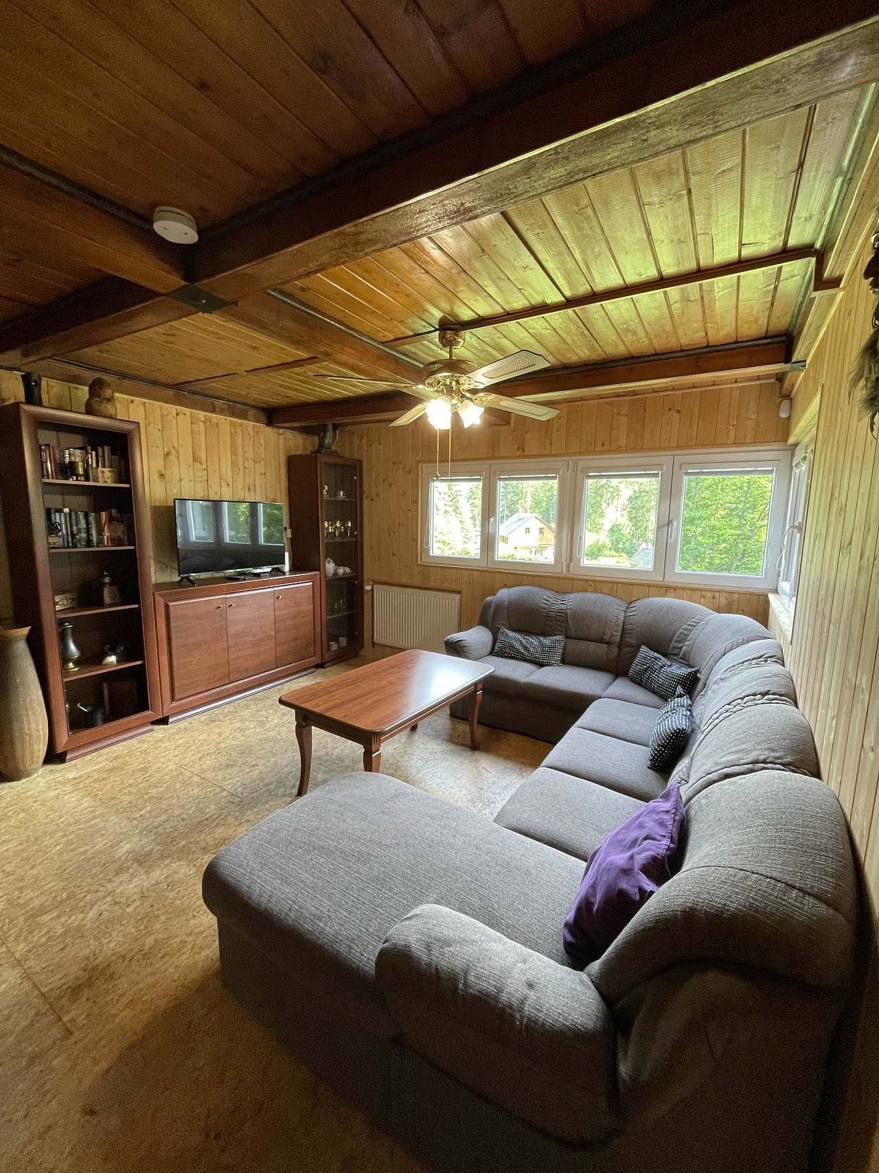 Prostorná chalupa k pronajmutí v Nové Olešce. /WIFI/. V přízemí je obývací pokoj 29 m2,který je vybaven sedací soupravou, jídelním stolem, krbovými kamny a televizí/satelit/DVD....