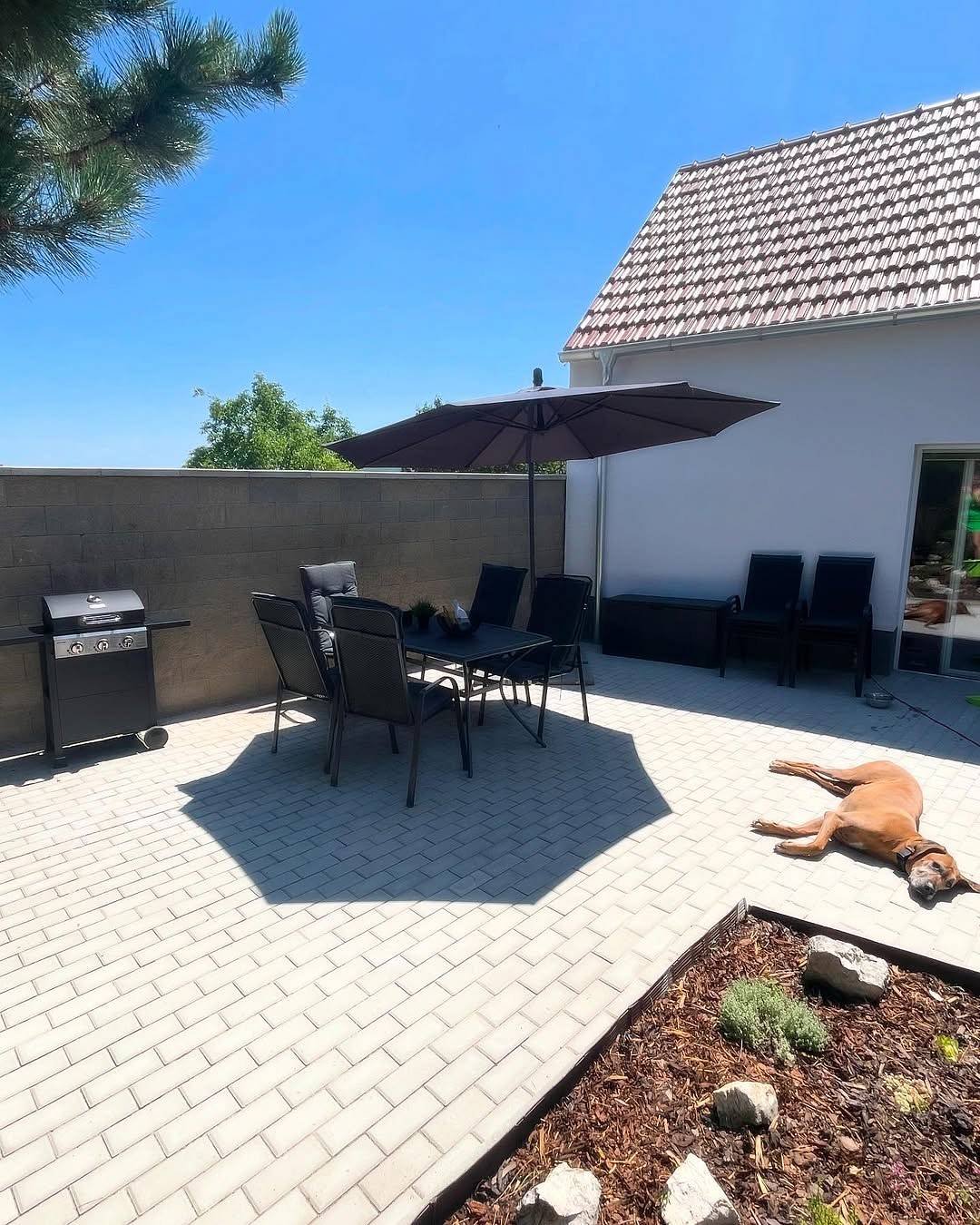 Novo zrekonštruovaný penzión s piatimi apartmánmi, krásnym výhľadom na priľahlú záhradu s marhuľovým sadom, veľkým bazénom s lehátkami a vonkajším zastrešeným posedením, grilom.