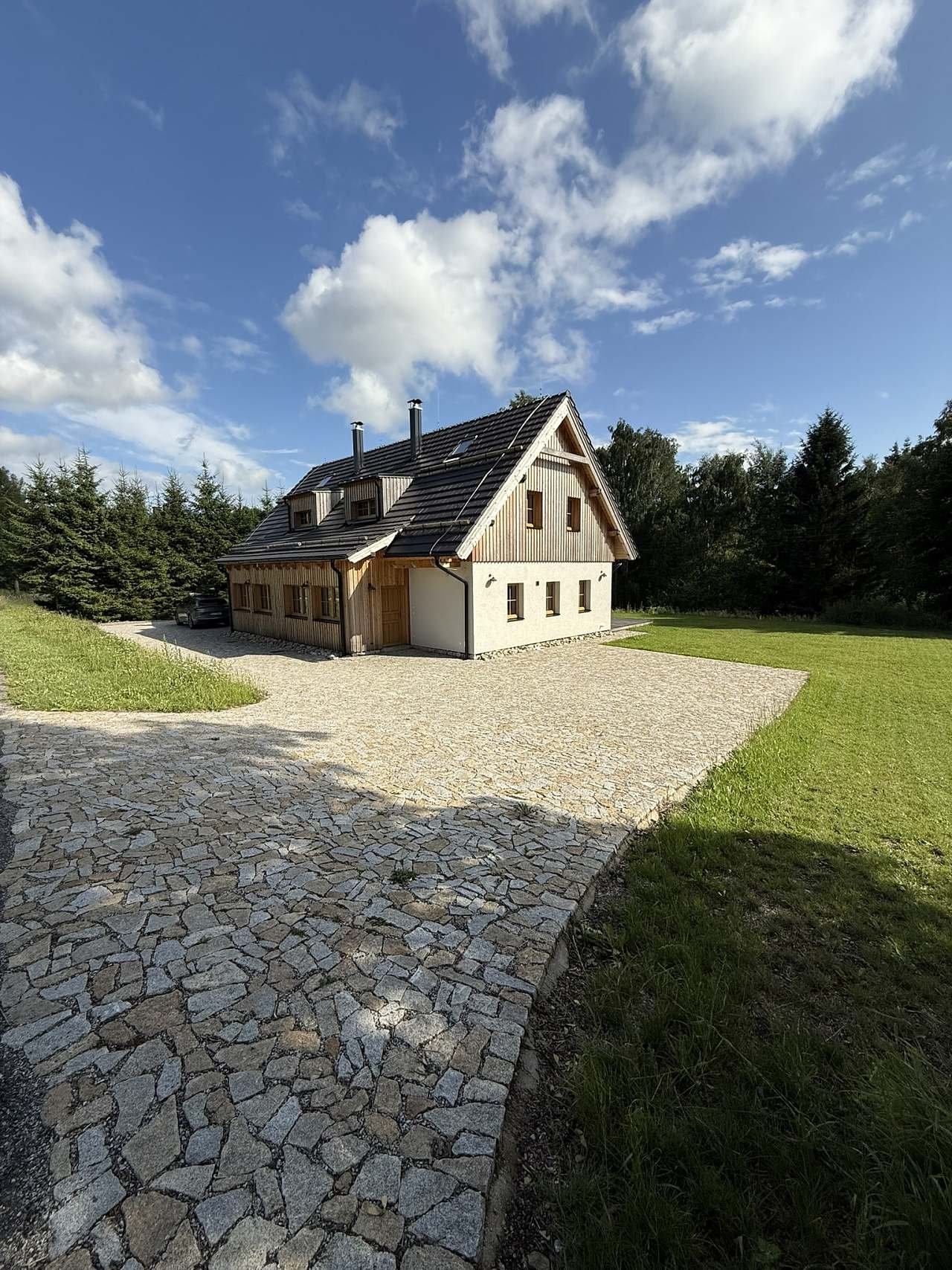 Dva luxusné a nadštandardne vybavené apartmány 3 + kk s veľkorysou terasou s grilom, posedením a výhľadom na šumavské lesy a pláne. Čaká na Vás unikátny interiér z prírodných....