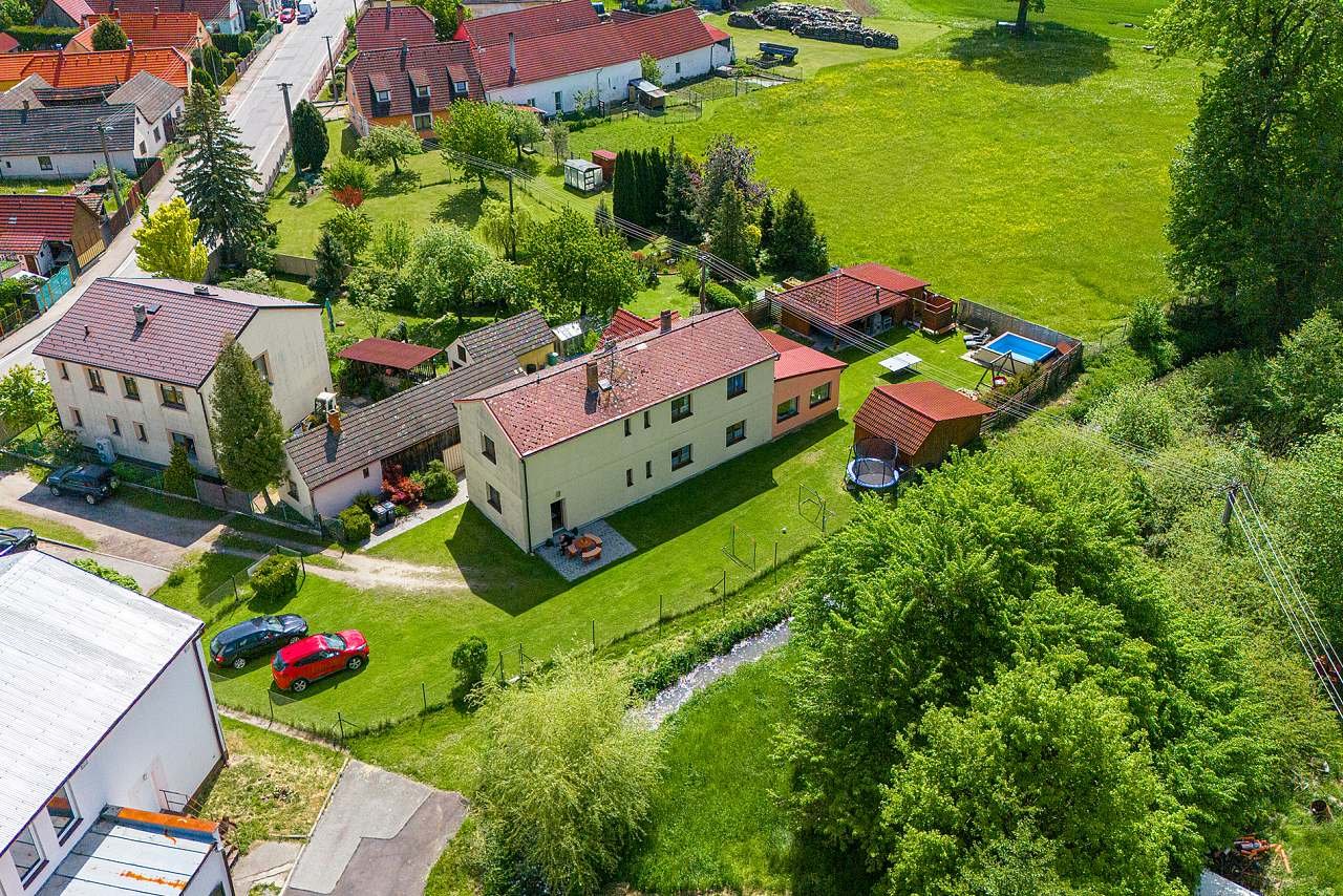 Chalupa se slunným zavlažovaným dvorem, saunou, nové ložnice, nová kuchyně, nová koupelna s vanou, sprchovým koutem, toaletou a bidetem. Druhá toaleta pro hosty. U sauna druhá...