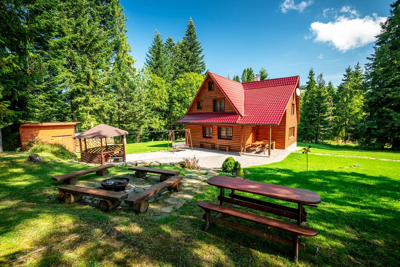 Chata v poľovníckom štýle s infrasaunou a kúpaciou kaďou s vírivkou na okraji obce u lesa, 150 metrov od zástavky skibusu, ktorý počas zimnej sezóny premáva bezplatne, 2 km...